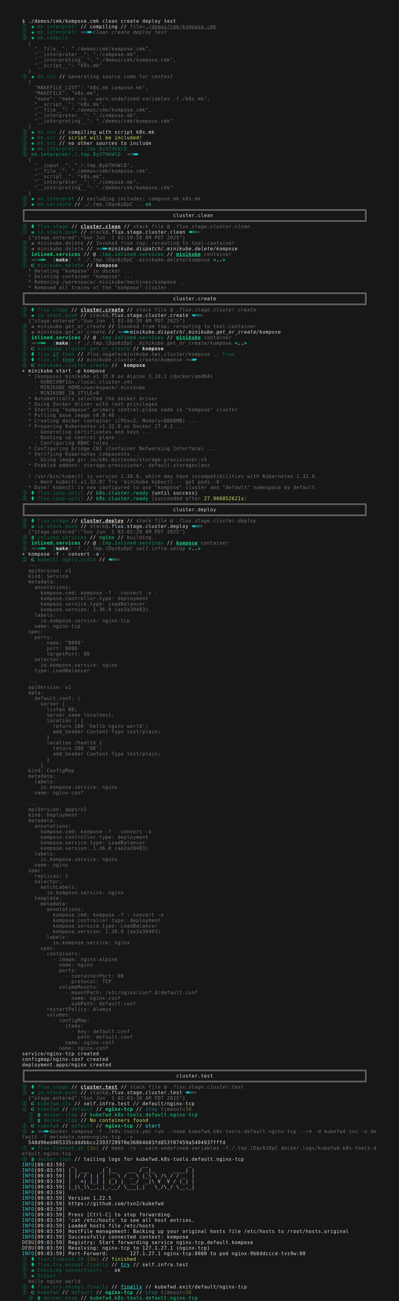 $ ./demos/cmk/kompose.cmk clean build create deploy test